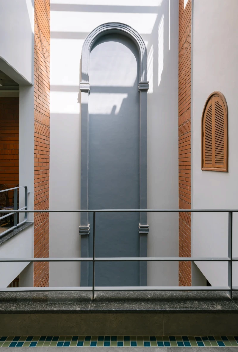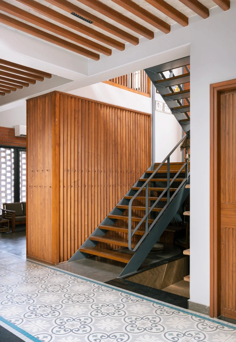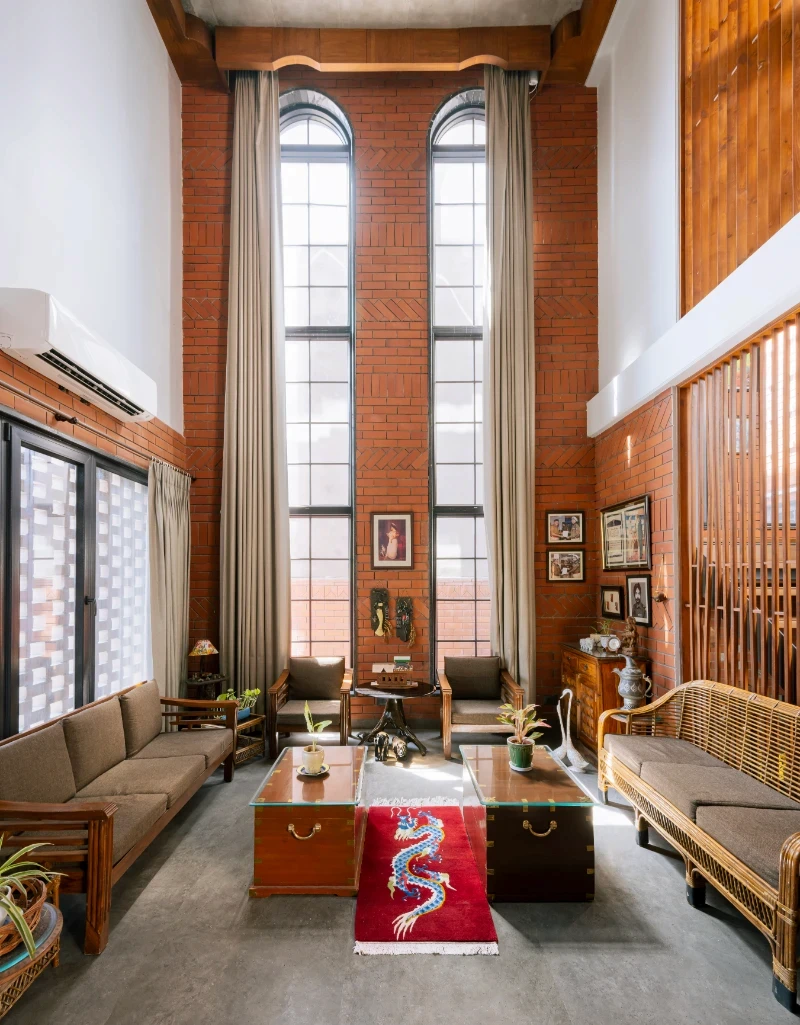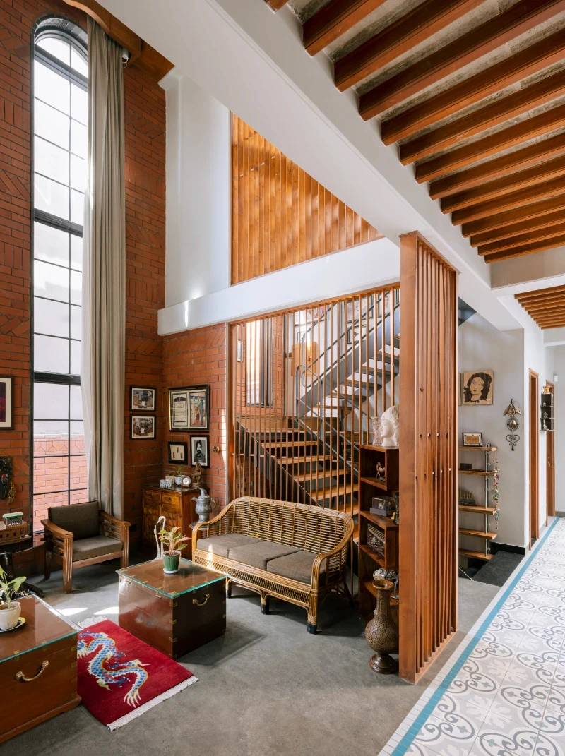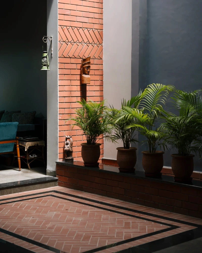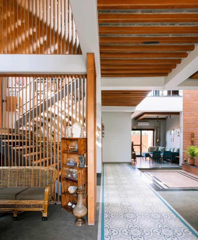 This house pays homage to the legacy of its ancestral roots while embracing modern design sensibilities. It stands as a testament to the timeless appeal of warm, rustic elements seamlessly intertwined with innovative touches, offering its inhabitants a harmonious blend of nostalgia and modernity. A spacious open floor plan with a central courtyard serves as a focal point, while earthy tones, such as warm browns, muted greens, and soft neutrals, contribute to the cozy atmosphere. Texture and patterns run riot throughout the house adding depth and character to each space . The furnishings are a mix of vintage and modern novelties collected by client .