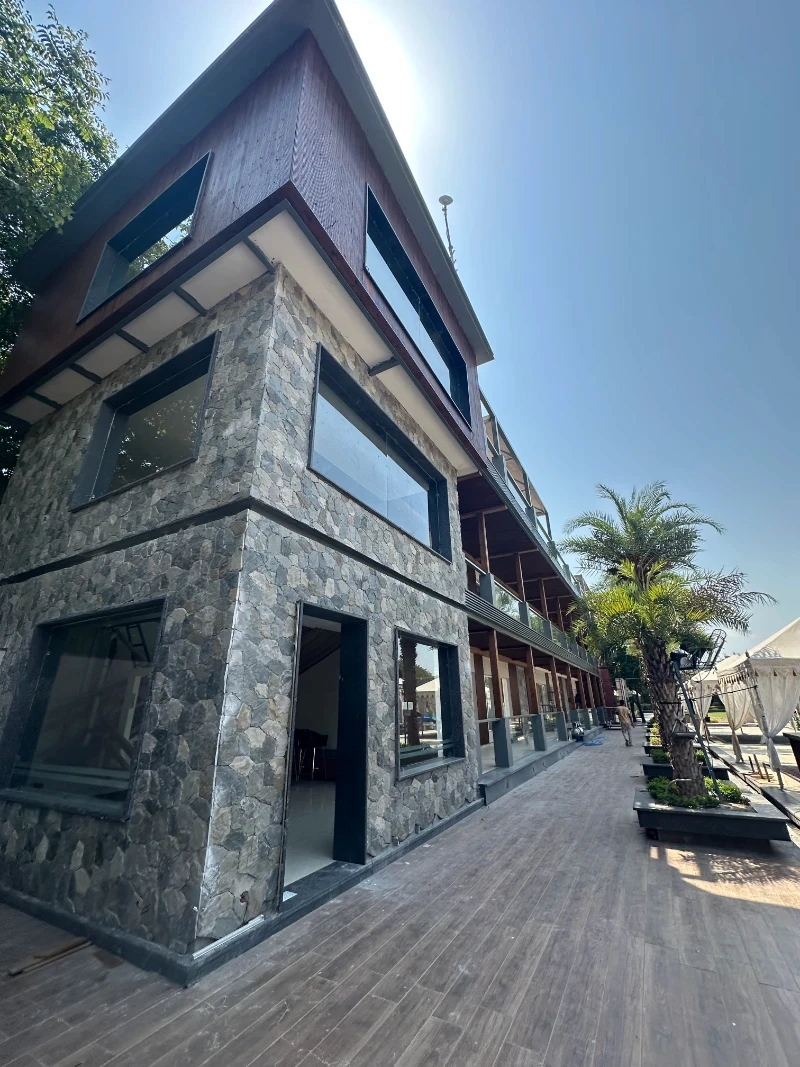 Currently under construction, The Rewild is envisioned as a quiet reclamation ,a resort reborn through nature and design. The renovation reimagines the built environment not as an imposition, but as an organic extension of the land. The architectural language is guided by earthy textures and tactility. Stone walls root the structure in permanence, while wooden cladding softens its edges, blending the built form into the lush green surroundings. The material palette remains deliberately earthen , natural stone, muted plasters, and raw finishes that age gracefully with time and weather. Spaces unfold as a series of calm experiences ,open verandahs, shaded corridors, and landscaped pockets that dissolve boundaries between inside and out. The intent is to preserve the soul of the original site while allowing new layers of craft, light, and landscape to emerge. At its core, The Rewild is not merely a renovation ,it is an act of renewal. A resort that reconnects luxury with stillness, and architecture with the living earth.